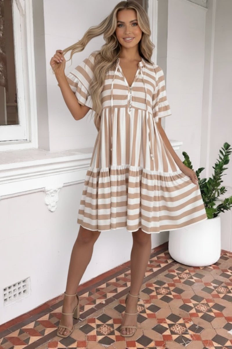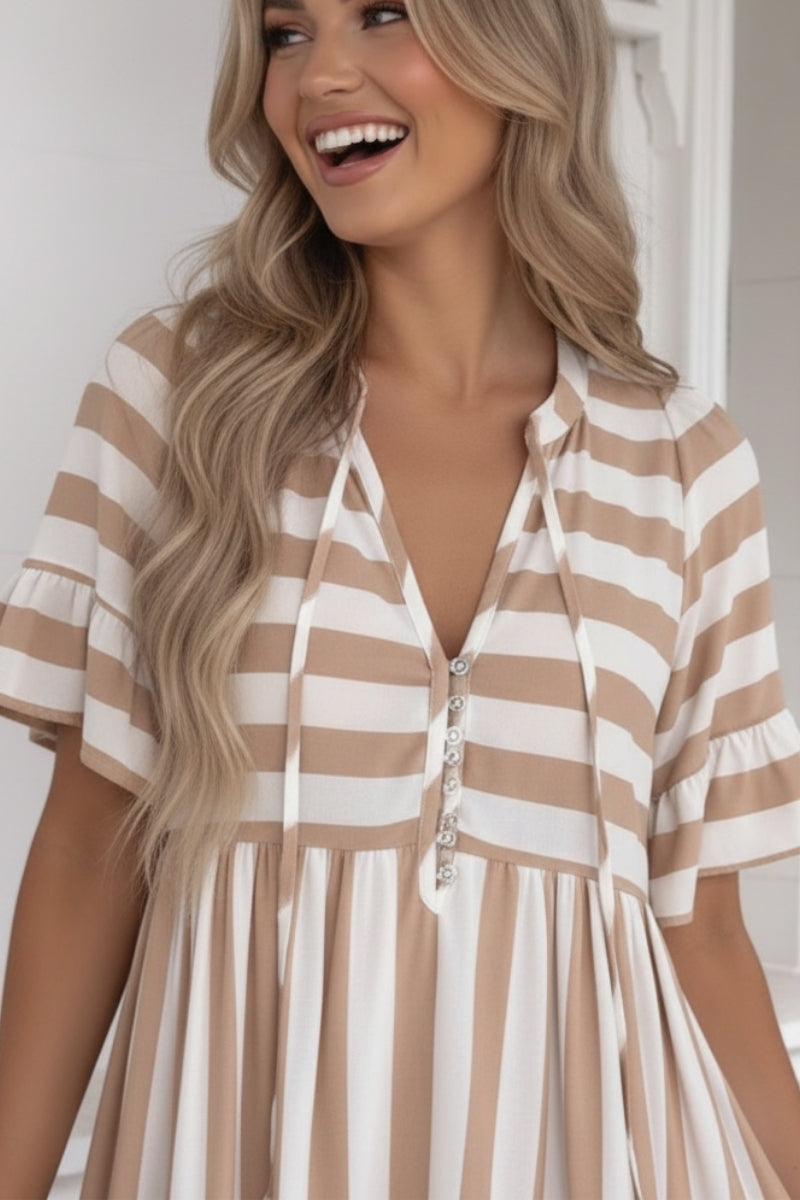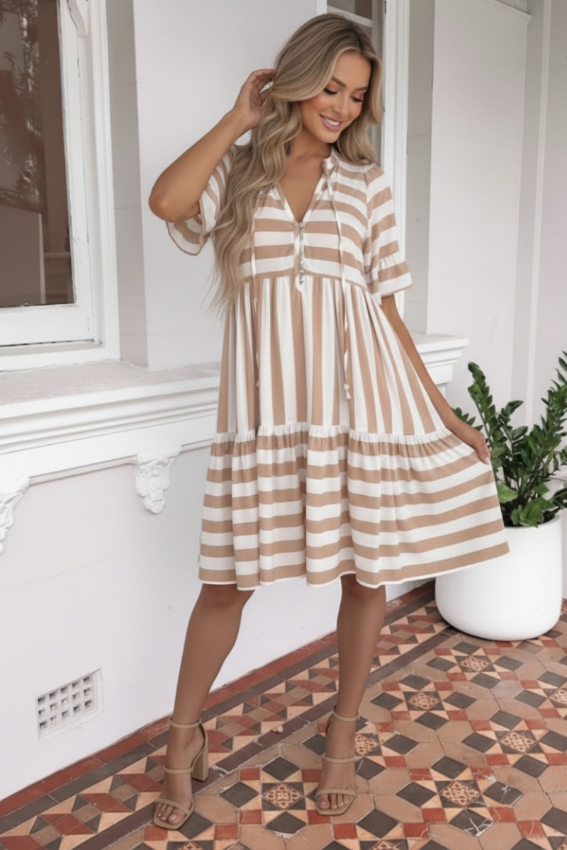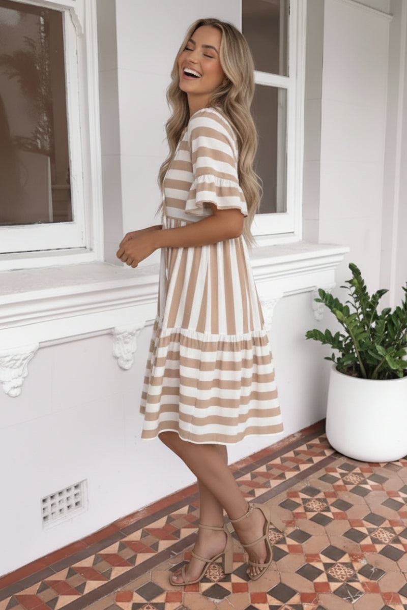 Serah Dress - Beige Stripe