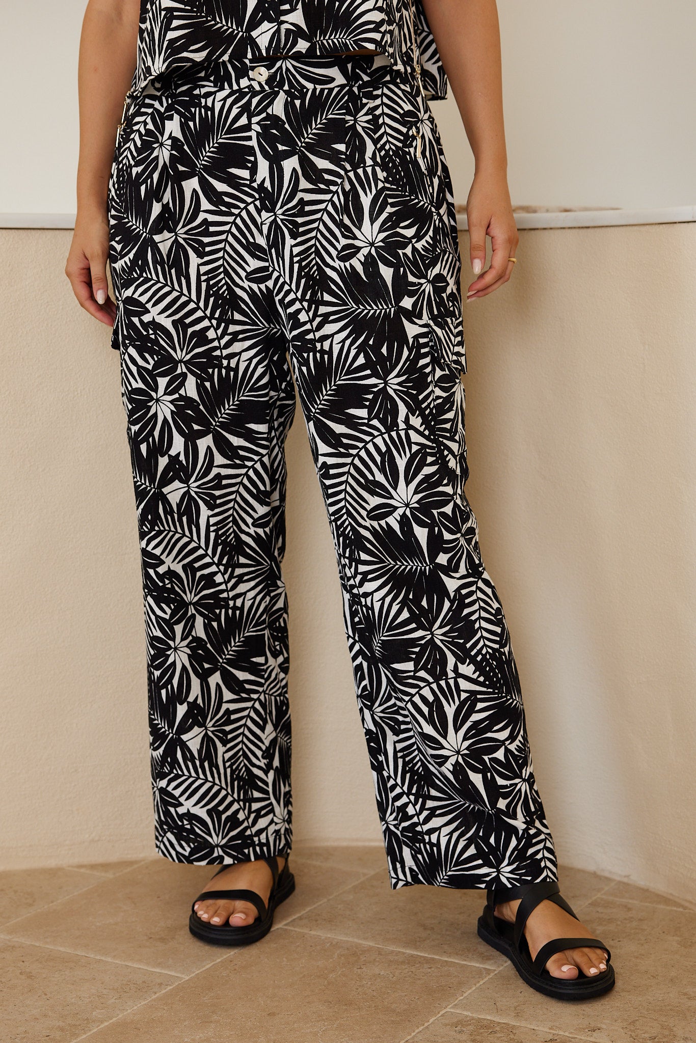 Our Casandra Pants come in a white base with black prints. Make an impact this season with this number that features a high waist fit, belt loops, quarter zip closure, side pockets, semi-wide leg fit and long length hem. Pair with a collared top and a sneaker heels!