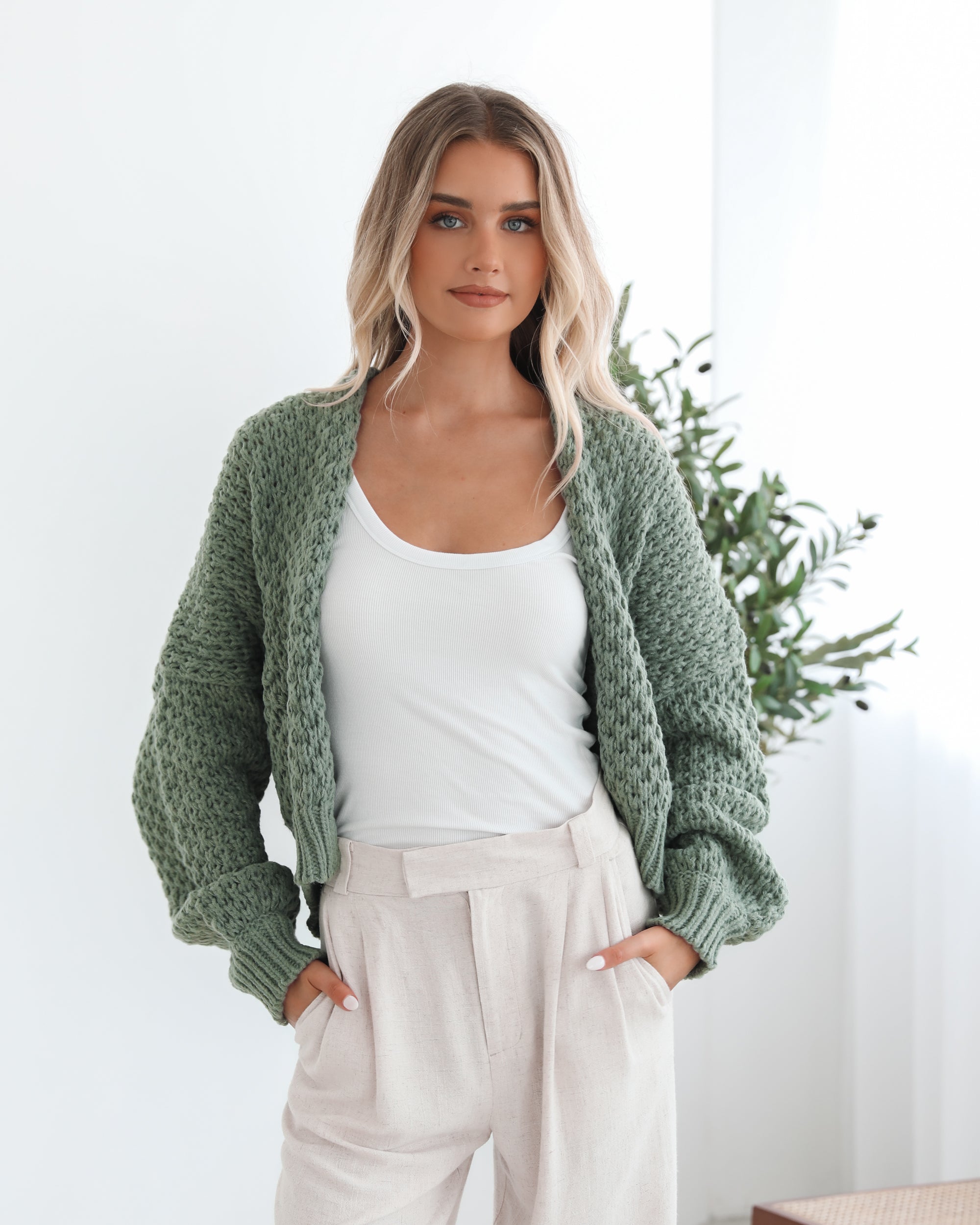Our Dorine Cardigan comes in a forest green colour. Show off your beauty in a sophisticated way with this outerwear that features an open front, long sleeves and relaxed fit. Team it with a top and skirt ensemble!