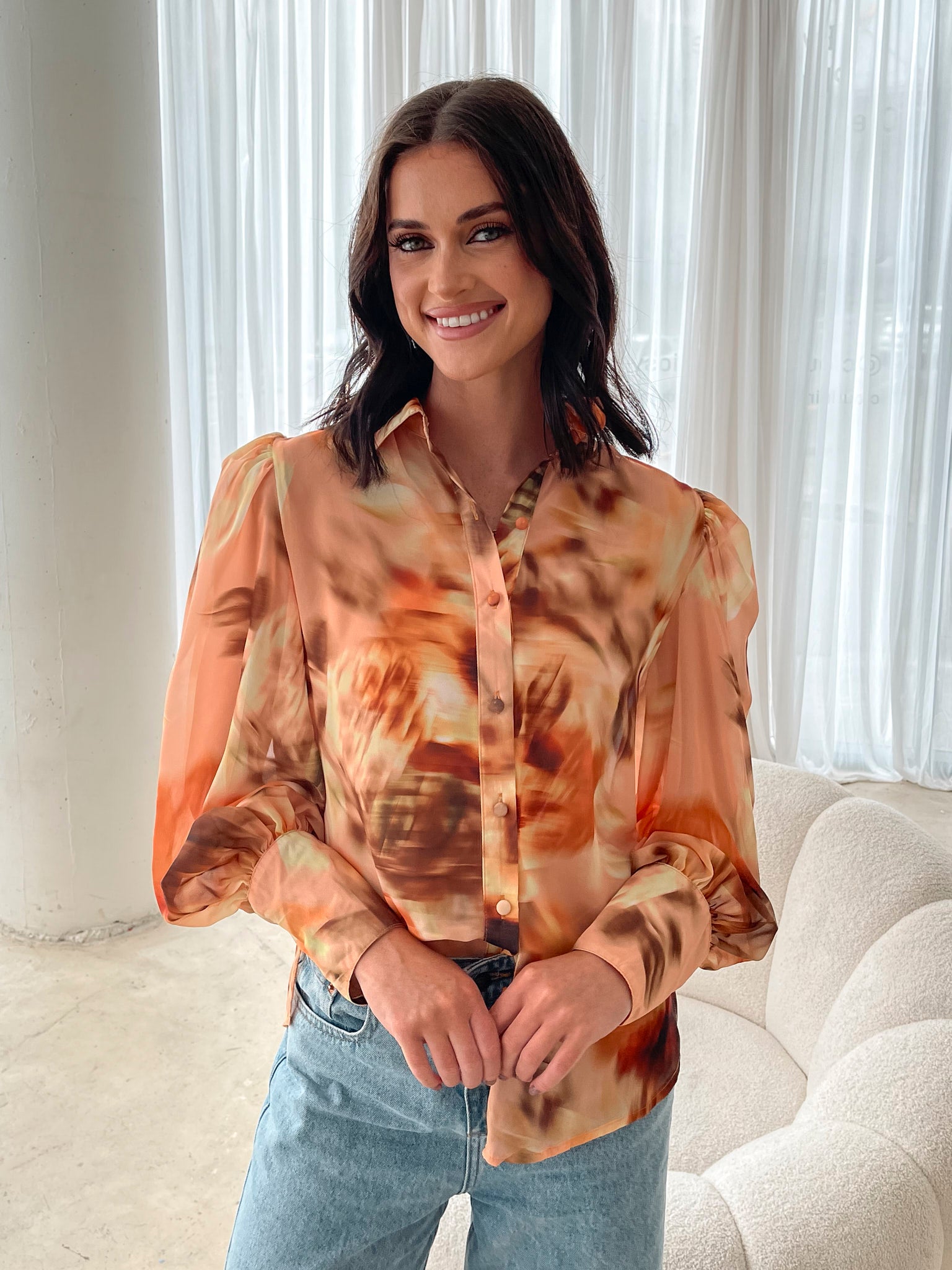 Fleet Blouse - Yellow Blurred Floral is exclusive to the Esther the Label Collection