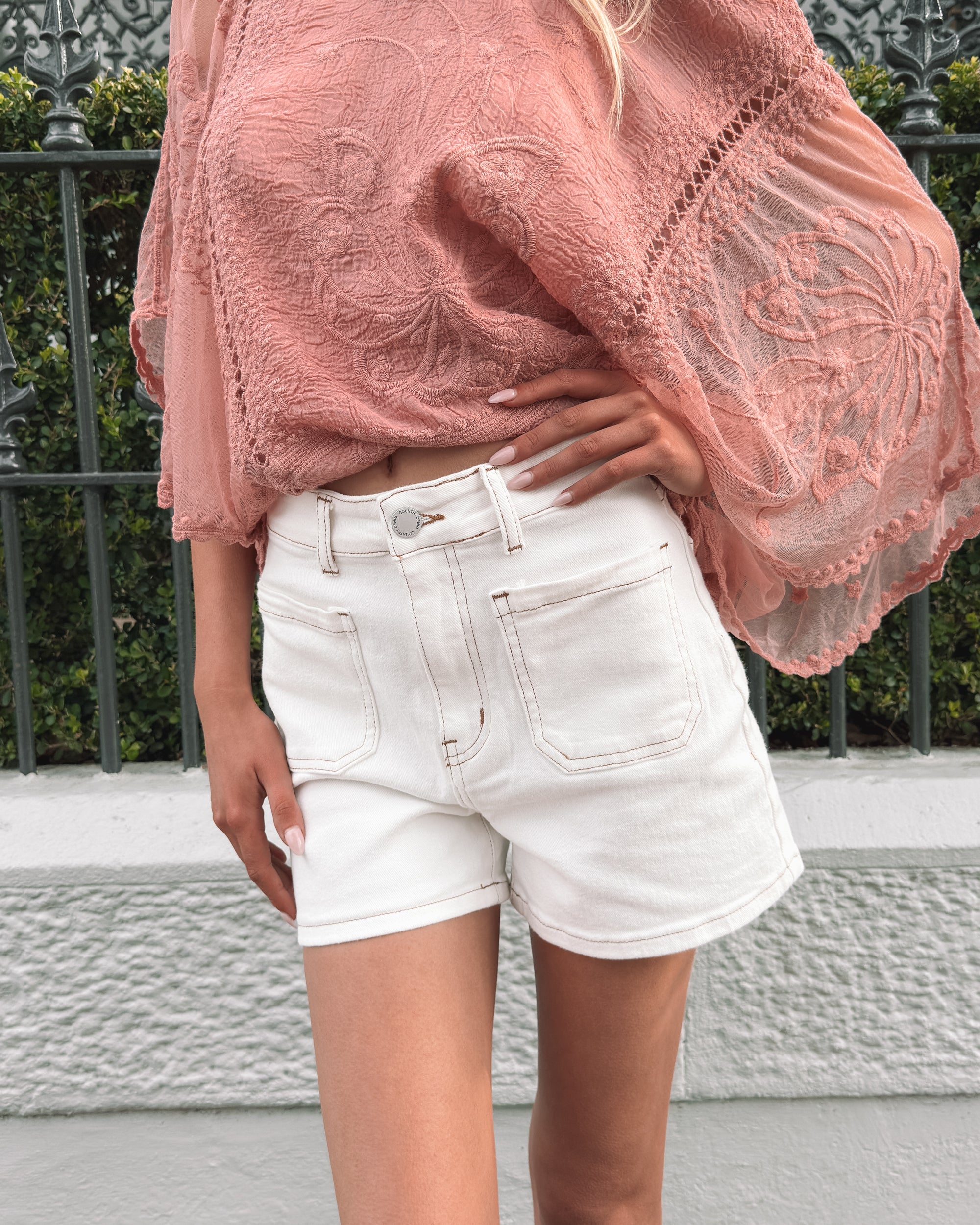 Our Gabrielle Top comes in a stunning clay pink tone. This lightweight sheer top features lace embroidery for a gorgeous bohemian look. The relaxed fit is ideal for the warm weather to come and pairs beautifully with a nude lacey bra. This is a one size fits all that fits sizes 6-14 depending on the desired fit.