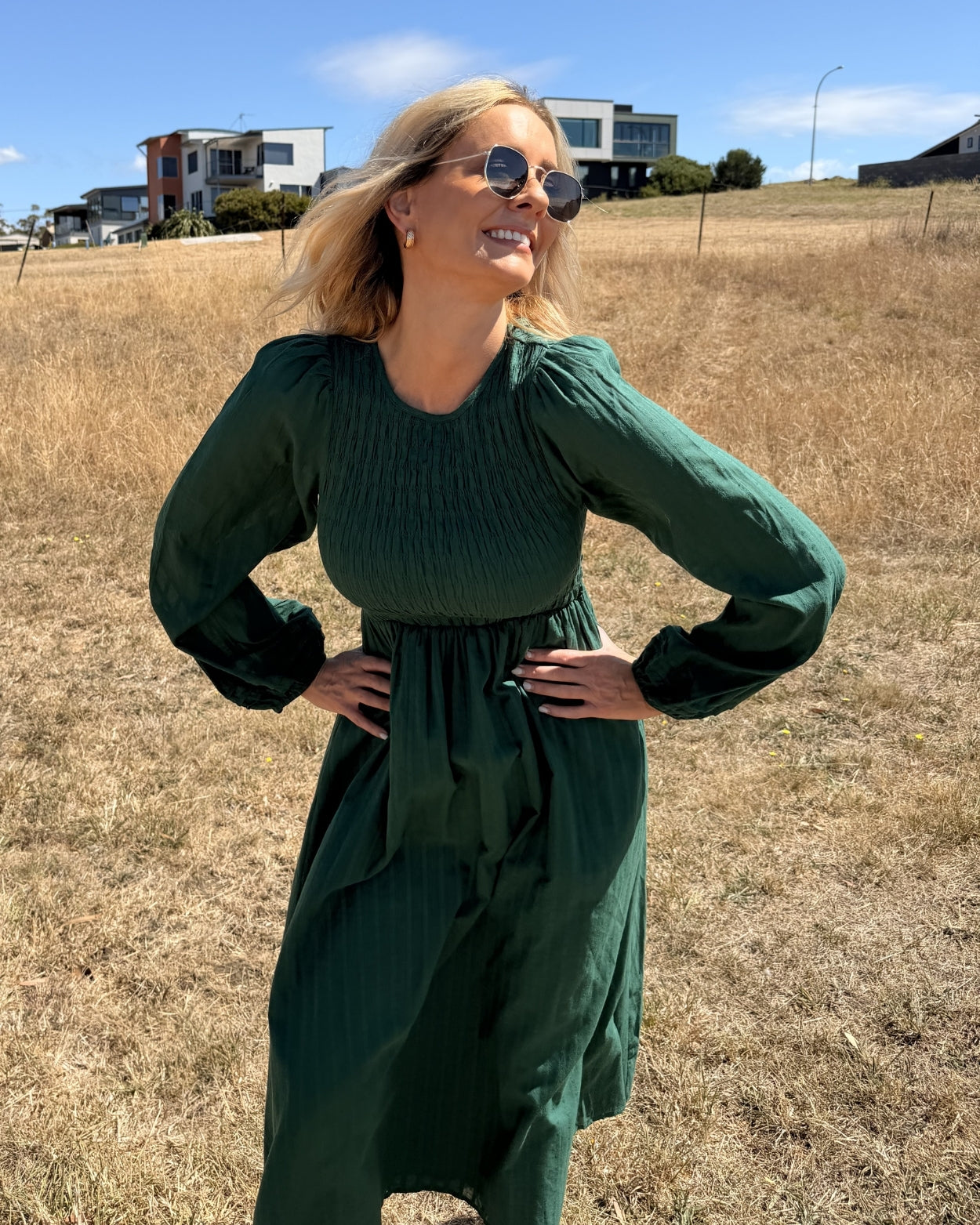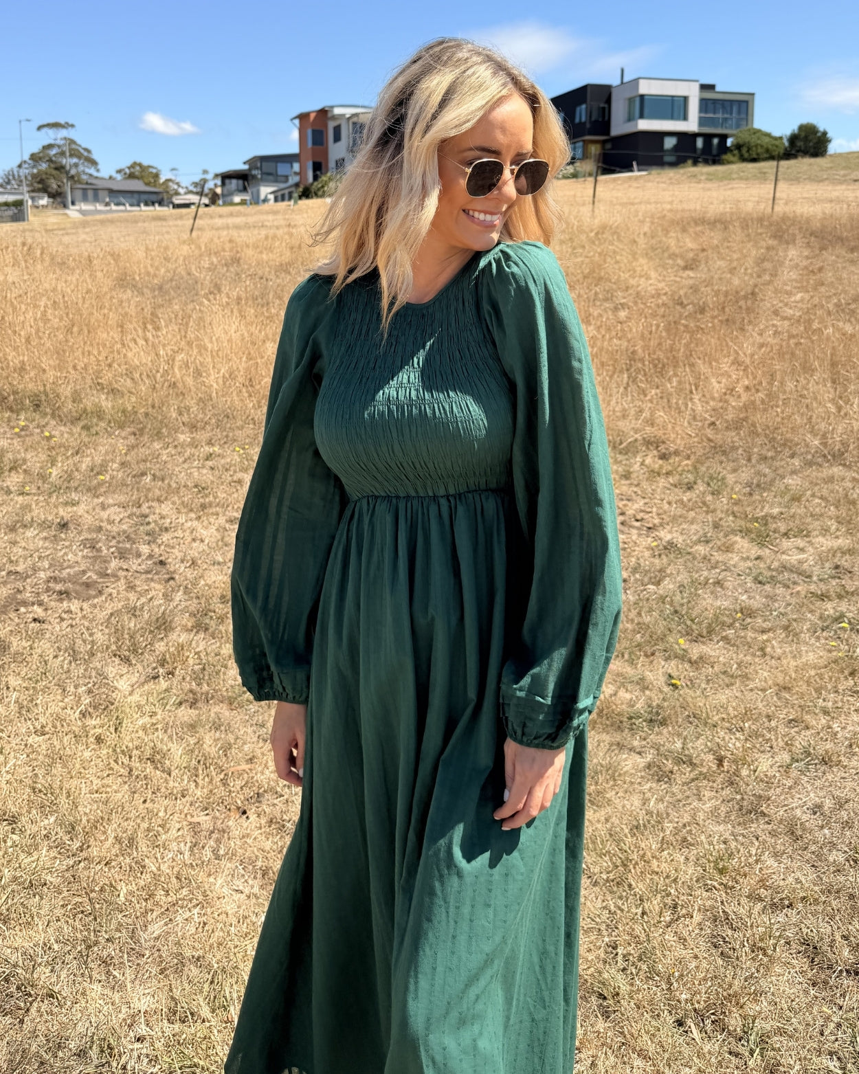 Iolana Dress - Deep Green Long Sleeve