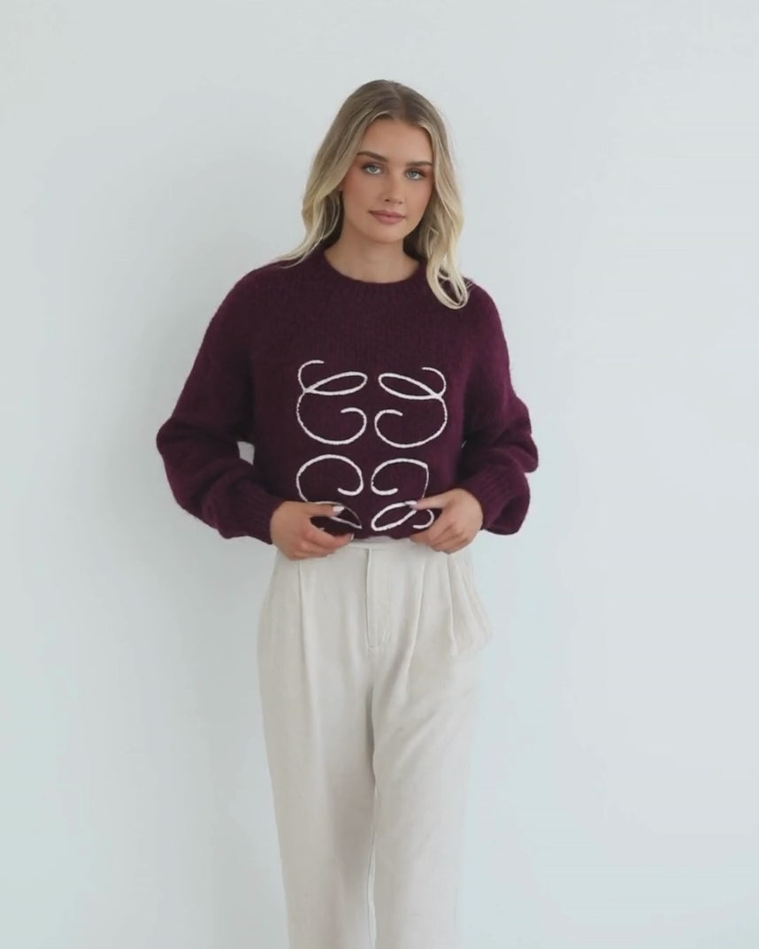 Our Adelaine Knit comes in a maroon and white colours. Hugging you gently while making you effortlessly stylish, this jumper is designed with a round neckline, long sleeves and relaxed fit. Pair it with distressed denim and ankle boots for an effortlessly chic weekend look!