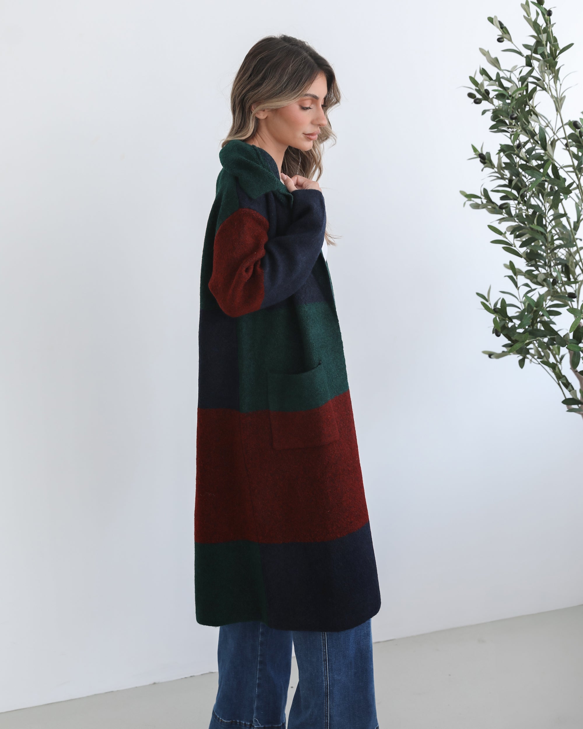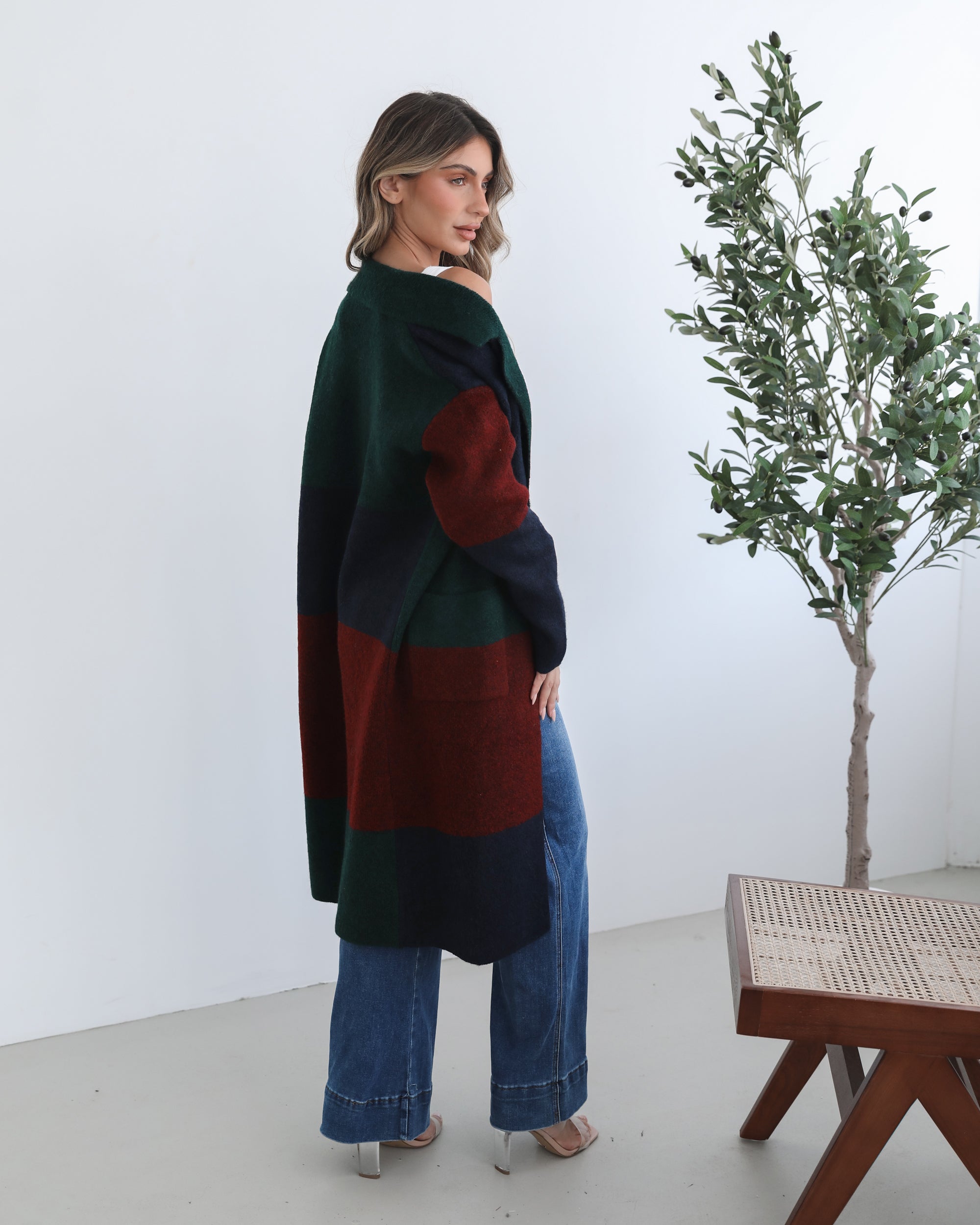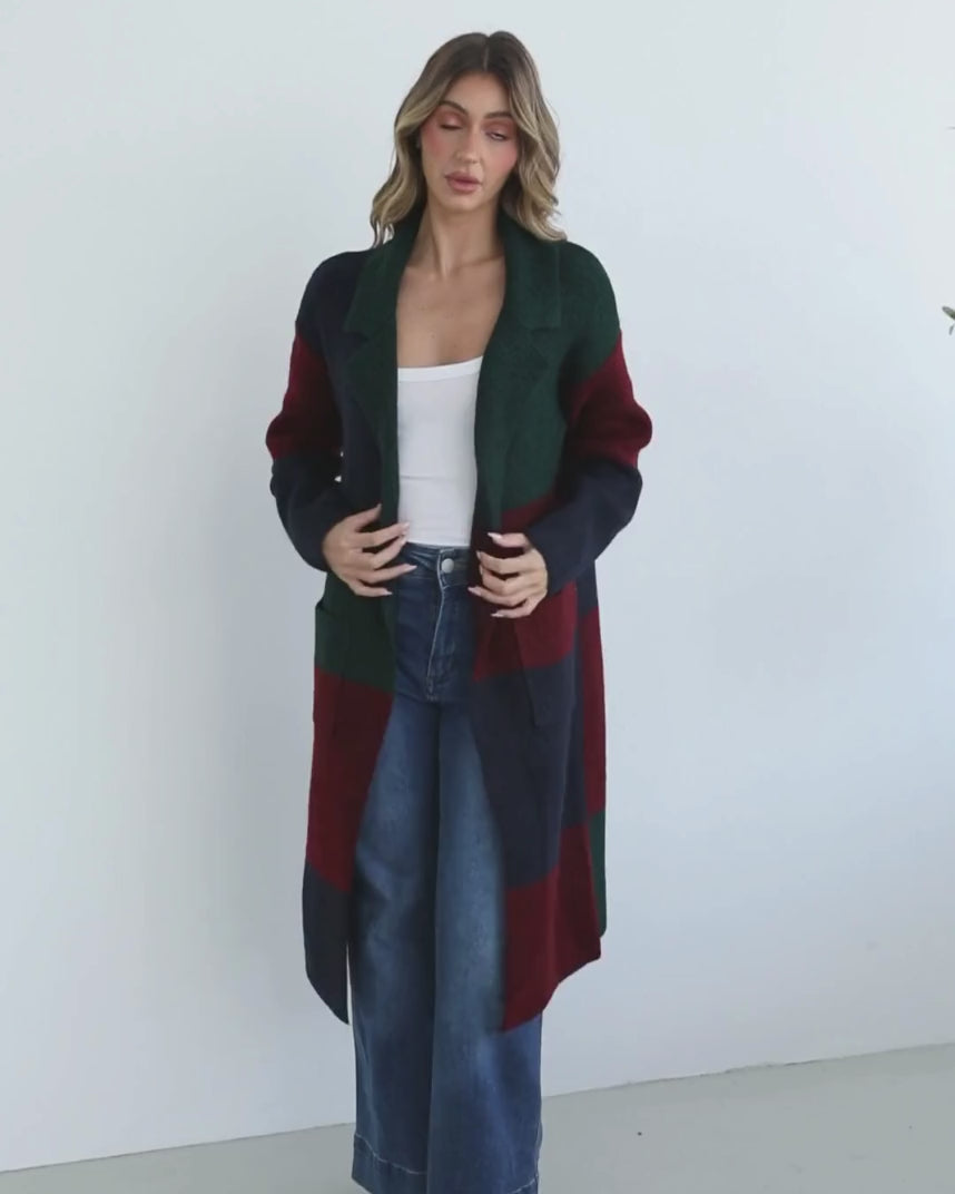 Our Perinne Coatigan comes in shades of red and black. Chic, check and cosy, this outer features a collar, long sleeves, side pockets and long length hem. Team it with a ribbed midi dress and heeled mules for an easy, put-together vibe!