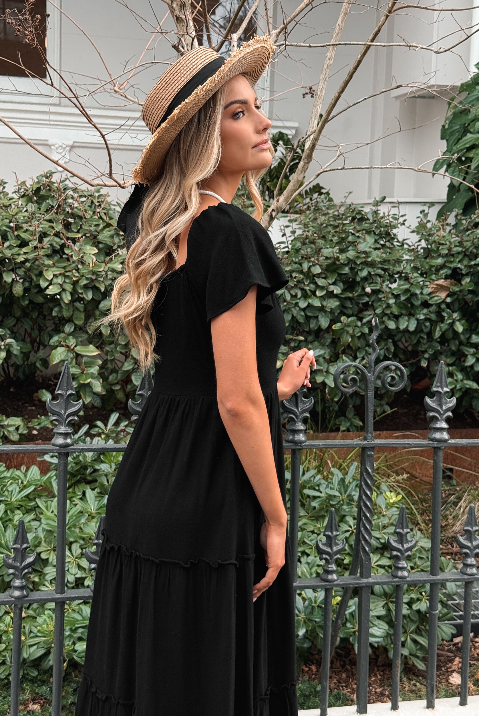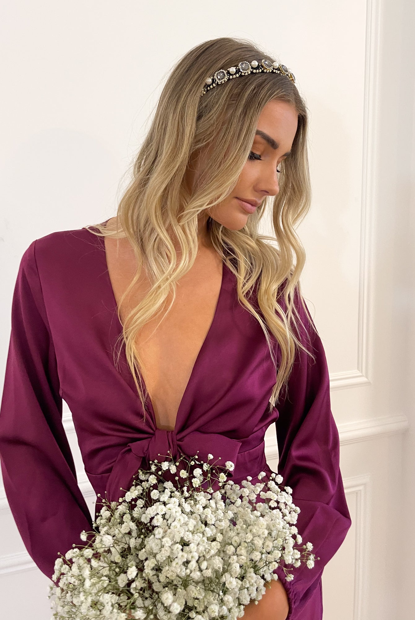 Our Iolana Dress comes in a deep green colour. It features a round neckline, short sleeves and a textured pattern across the chest. This stunning midi pairs wonderfully with boots or heels for a stunning formal look!