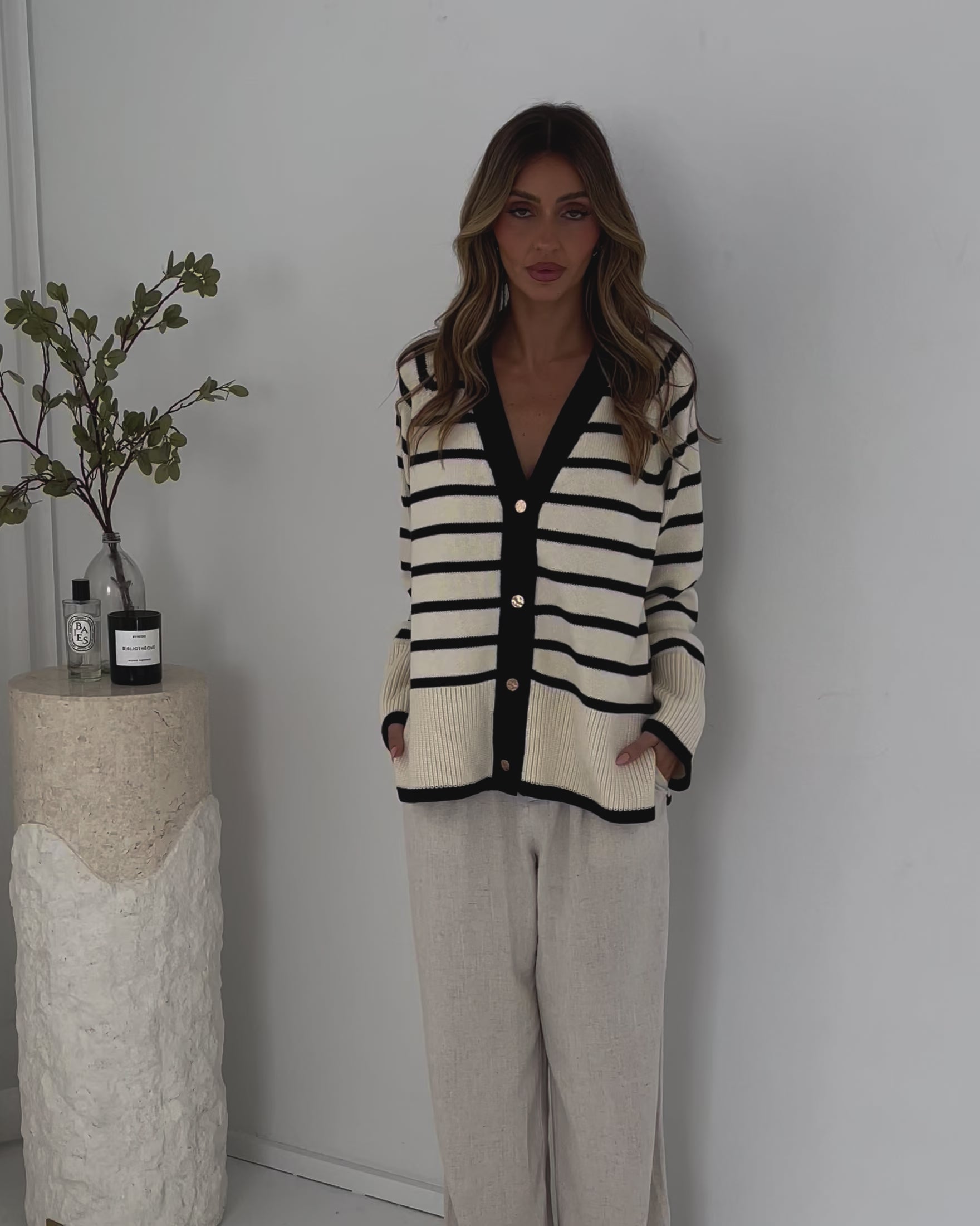Levara Cardigan - Cream Stripe