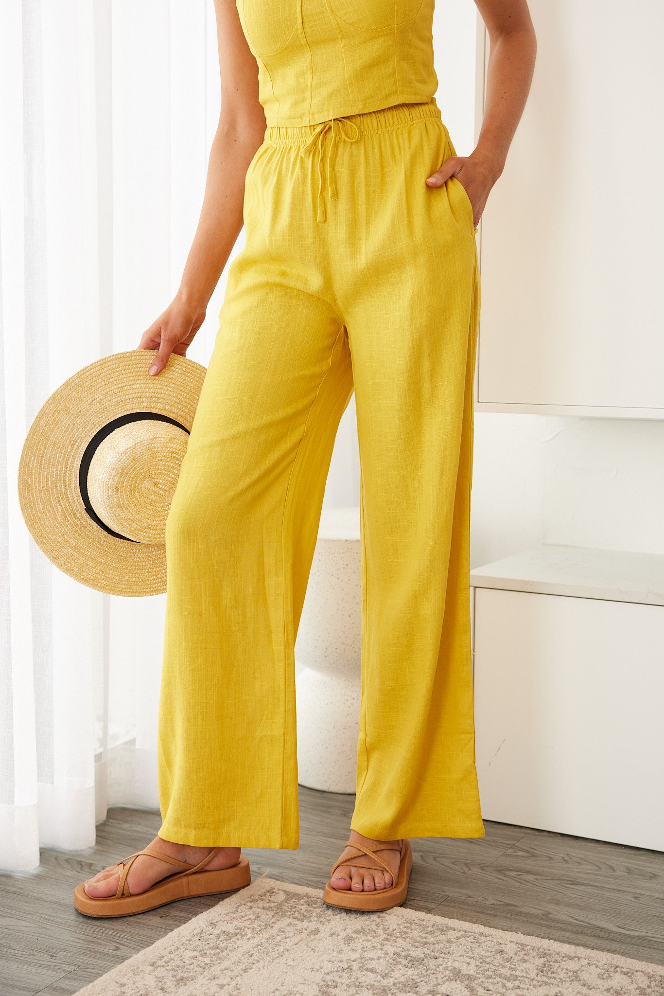 - Key Features: High waist fit. String on waist. Wide leg silhouette. Long length hem.