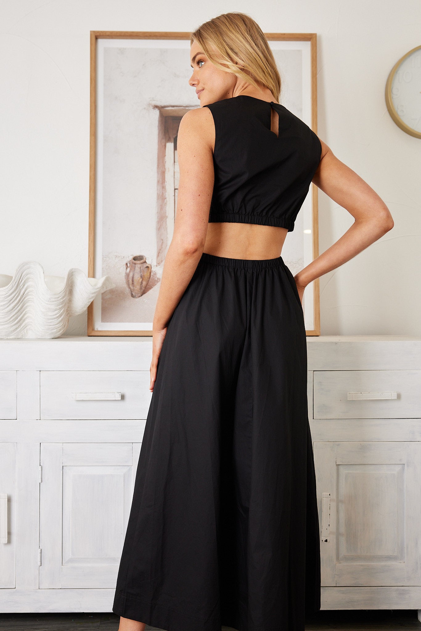 Our Kaiah Dress comes in a black colour. Be close to perfection with this staple that features a boat neckline, cutout detailing on waist with o-shaped ring, flowy a-line skirt and midi length. Match it with a mini bag and high heels!