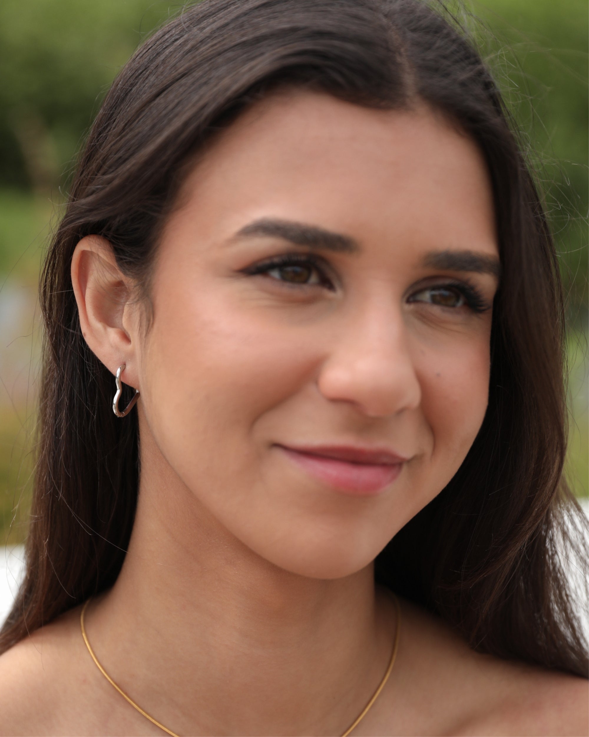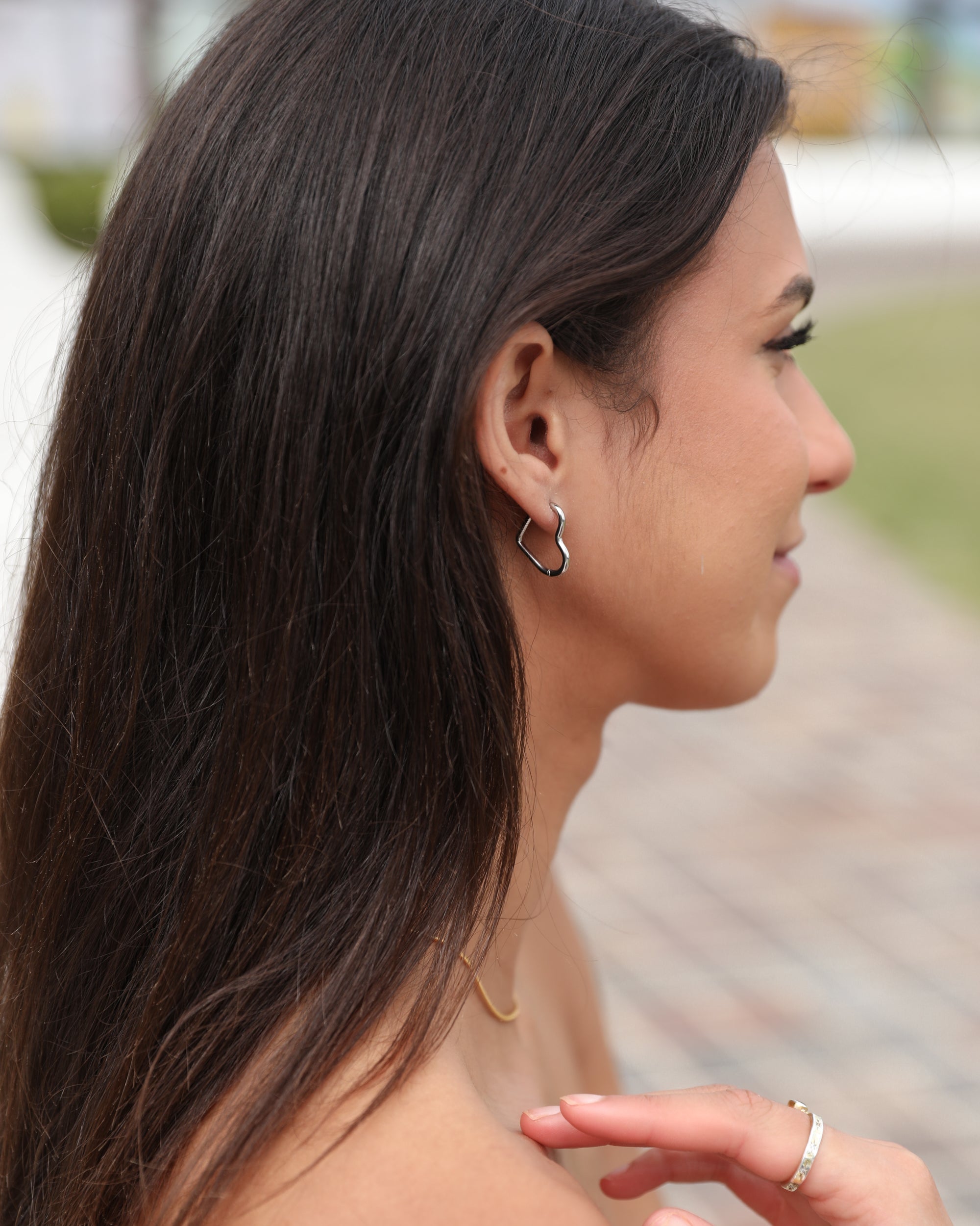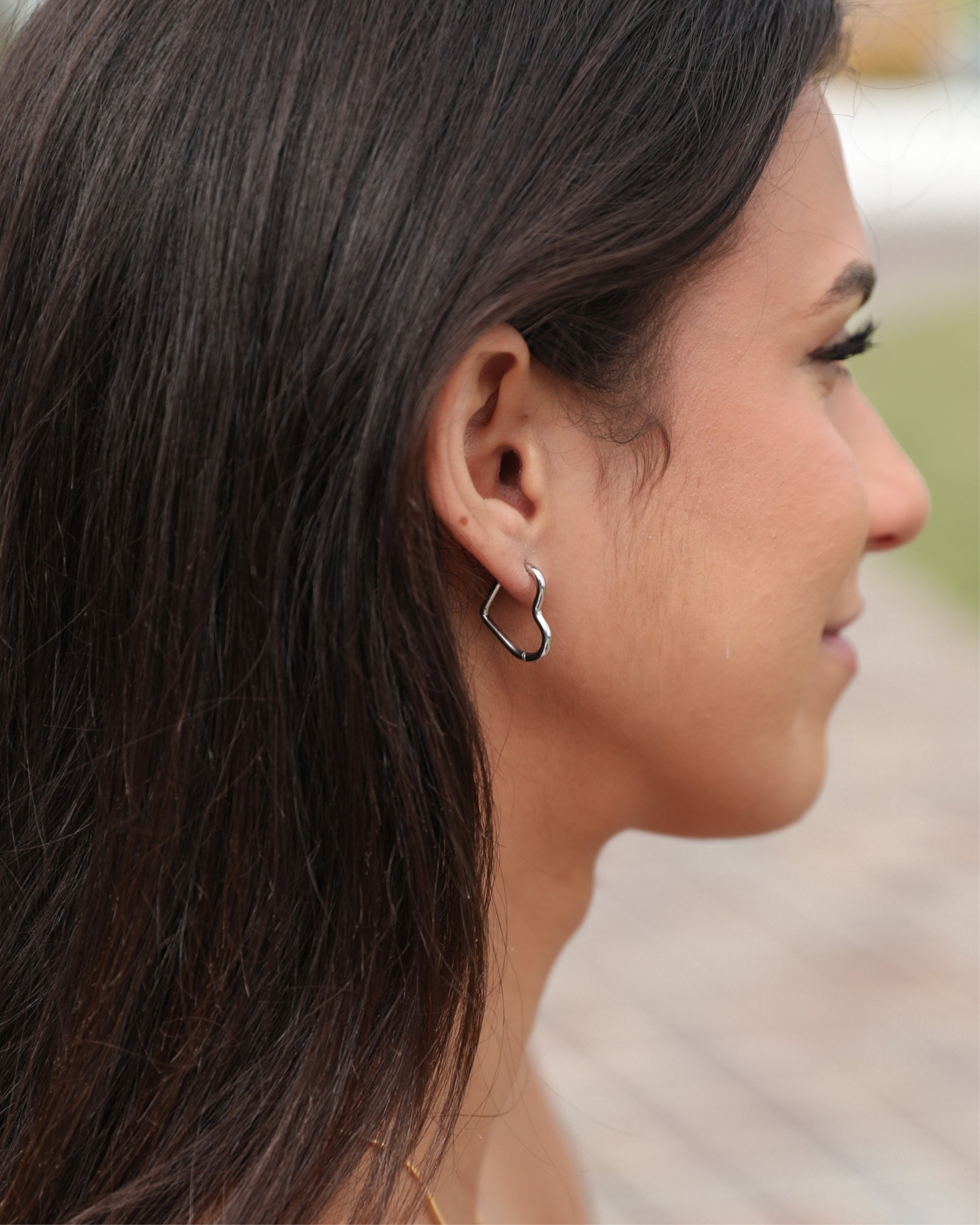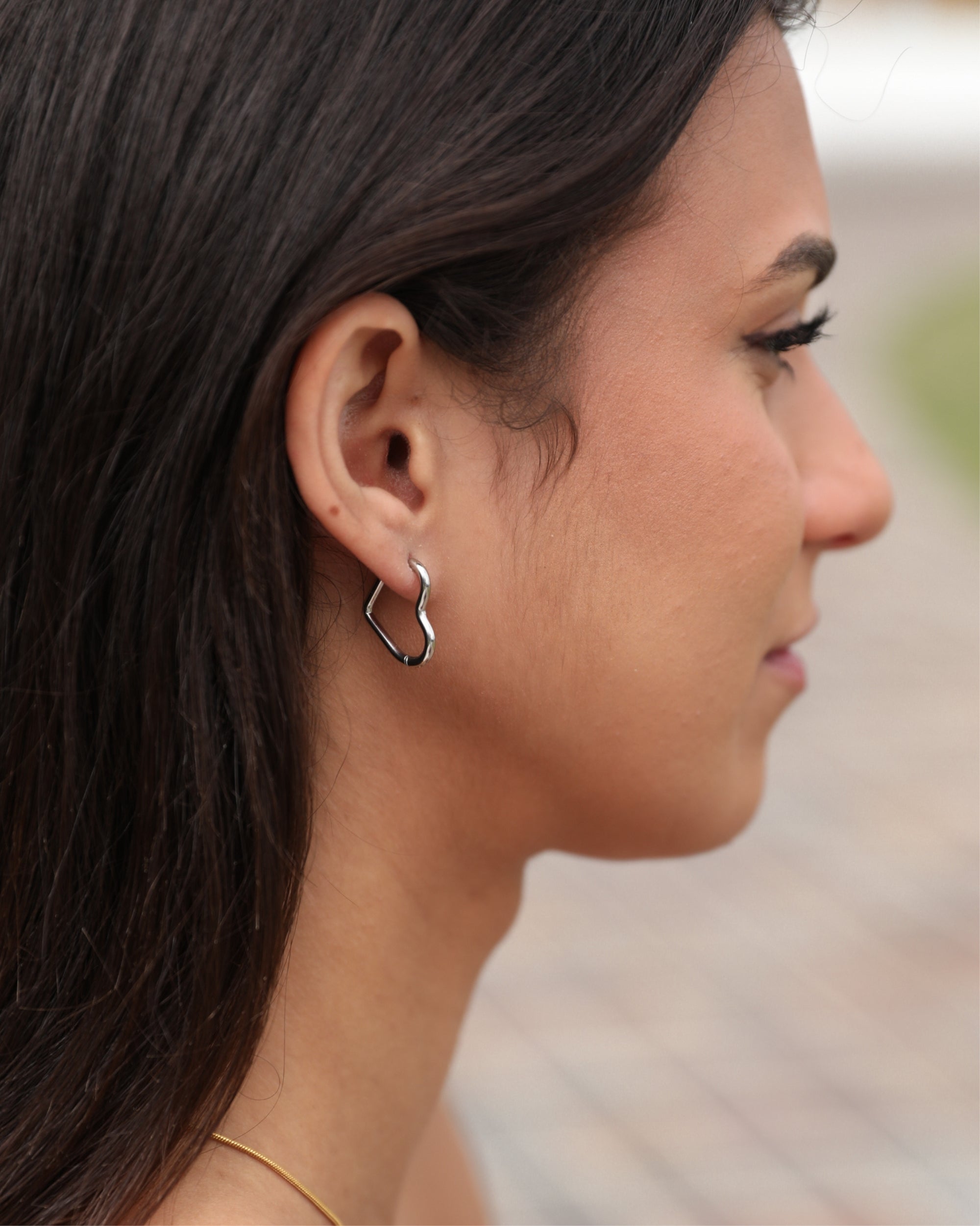 Our Helia Earrings come in a silver colour. A radiant expression of love, these pieces are designed with a heart shape. For a sophisticated vibe that lets these shine, style with a slip dress and natural makeup!
