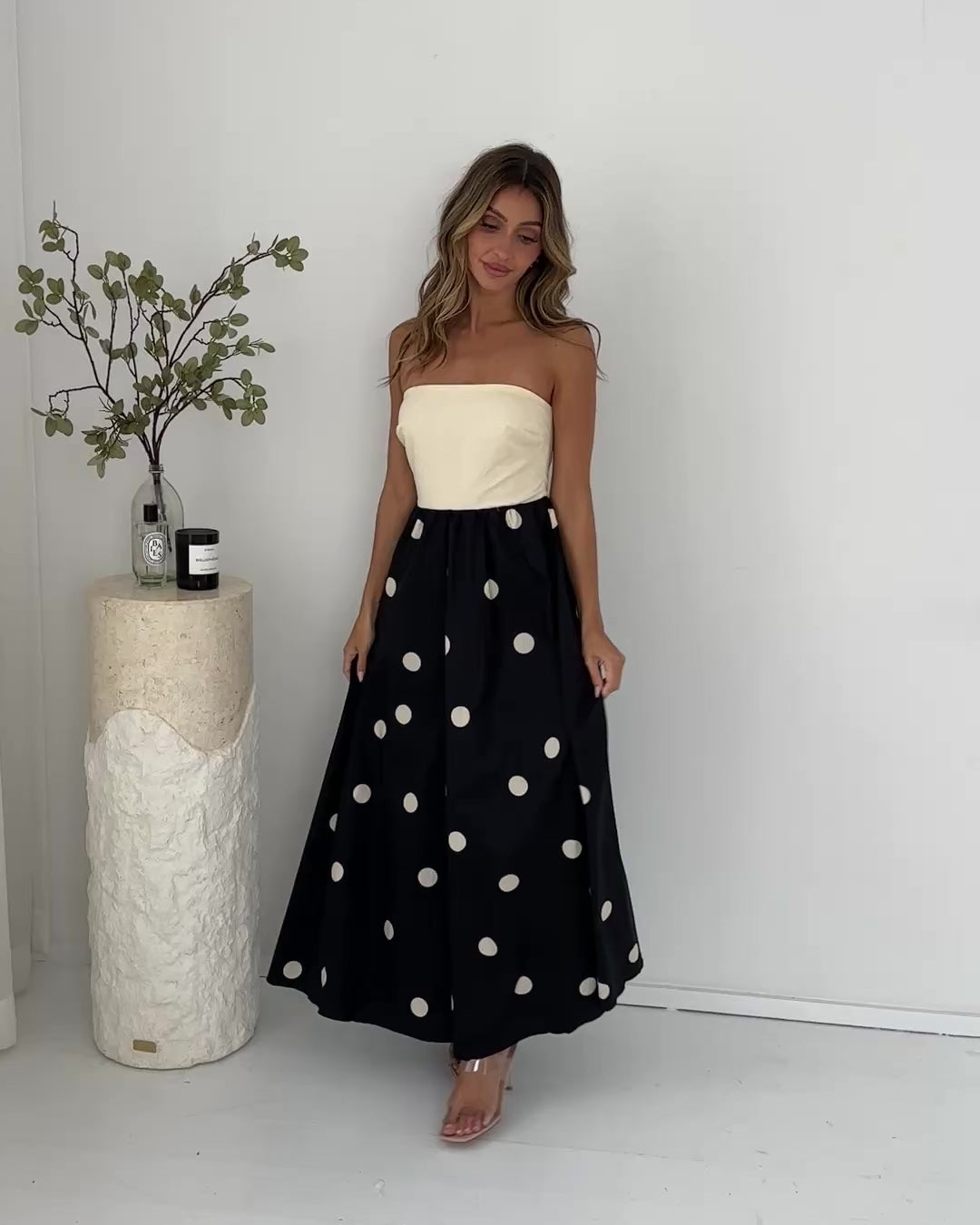 Our Orivelle Dress comes in beige and black tones. A little charm, a little mischief, and a whole lot of style, this number is designed with a strapless neckline, flowy a-line skirt and maxi length hem. Elevate it with statement earrings and heeled mules for a night of elegance!