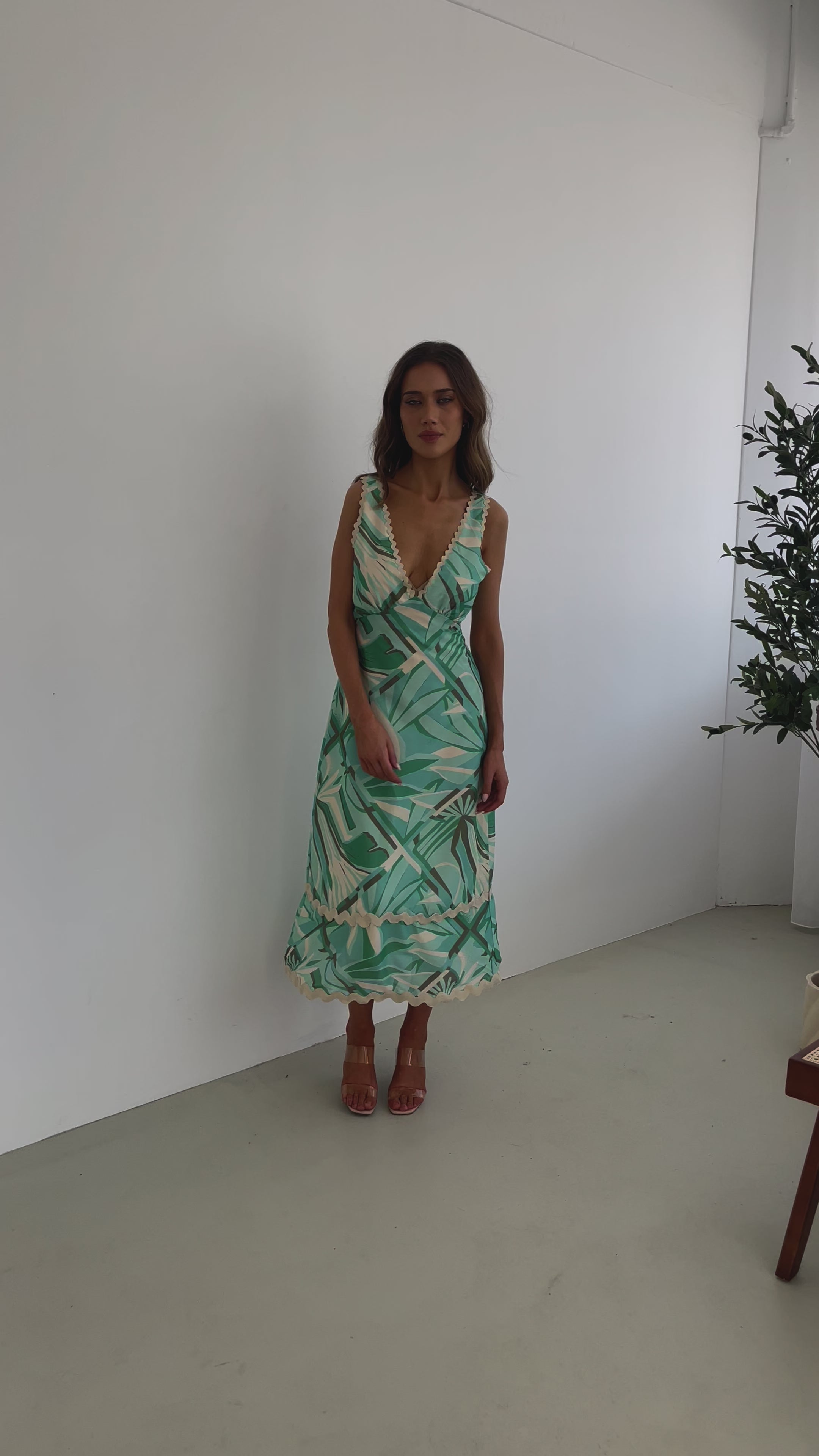 Our Sariyah Dress comes in shades of green. With a dynamic print that swirls like a painter’s brushstroke, this piece features a plunge neckline, back waist tie and maxi length hem. Pair it with chunky heels and gold accessories to channel a party goddess vibe!