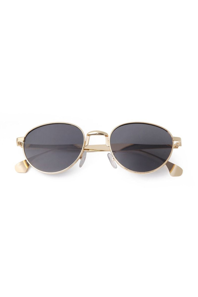 - Key Features: Timeless round lens shape. Sleek gold-tone metal frame construction. Dark black/grey-tinted lenses for essential sun protection. Minimalist and lightweight design. Provides UV 400 protection (Assumed for high-quality sunglasses).