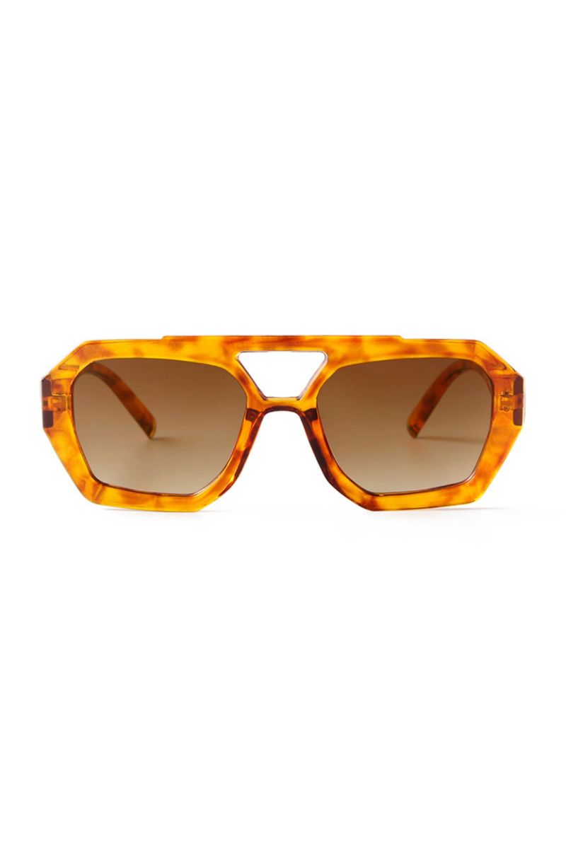 Ready for your close-up? These sunglasses are the definition of high-impact style with a warm, sun-soaked feel. Featuring the bold, angular aviator silhouette and distinctive keyhole bridge you love, this version comes in a striking light amber tortoiseshell that looks fresh, bright, and utterly luxe.