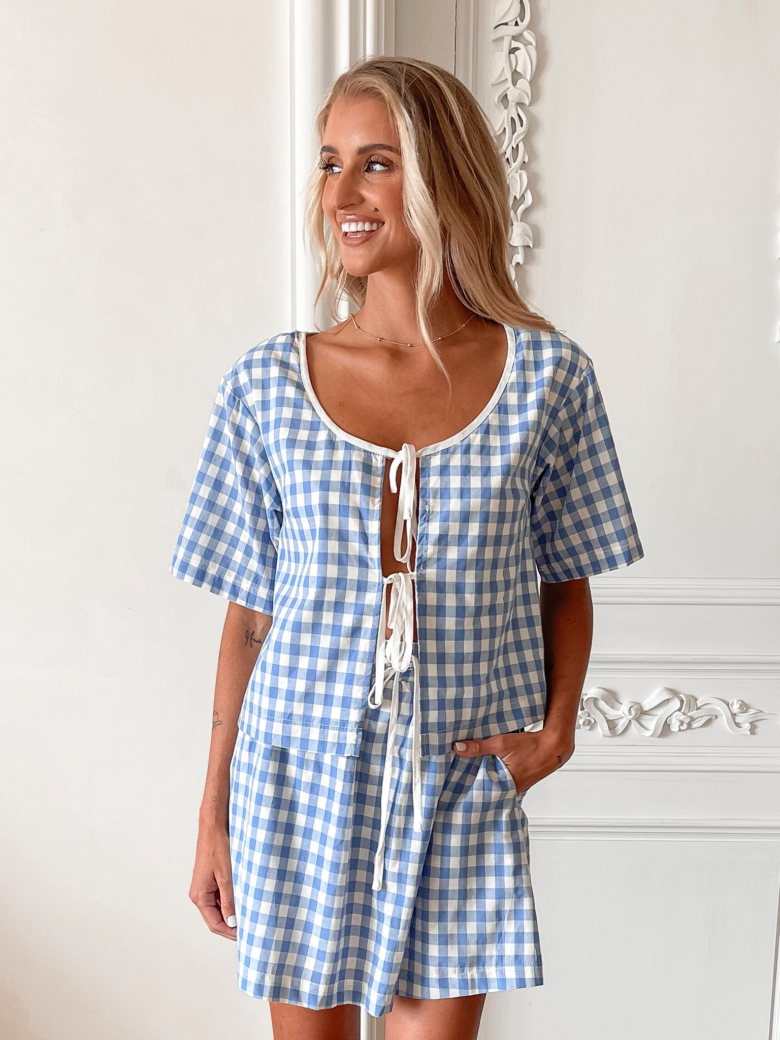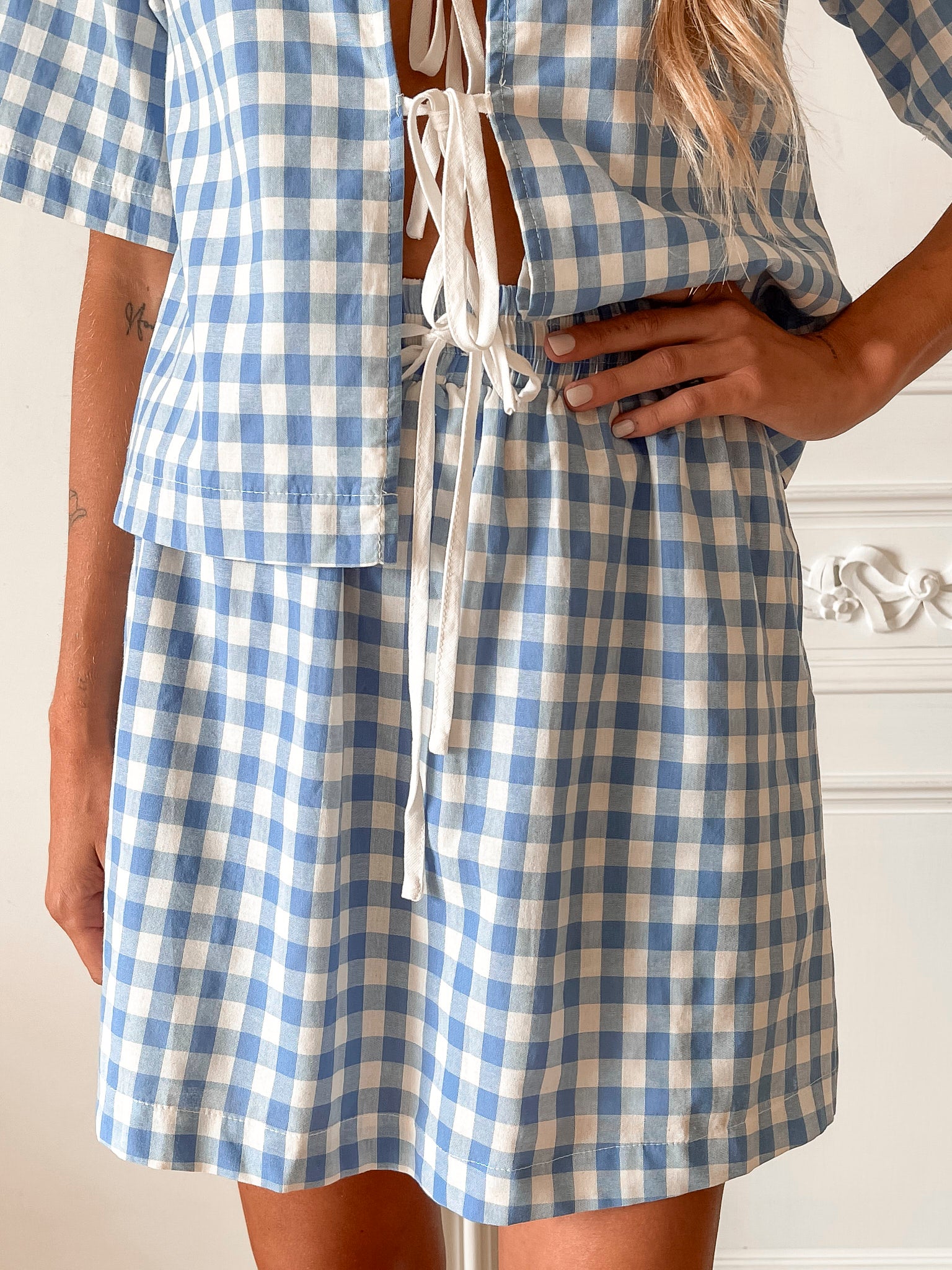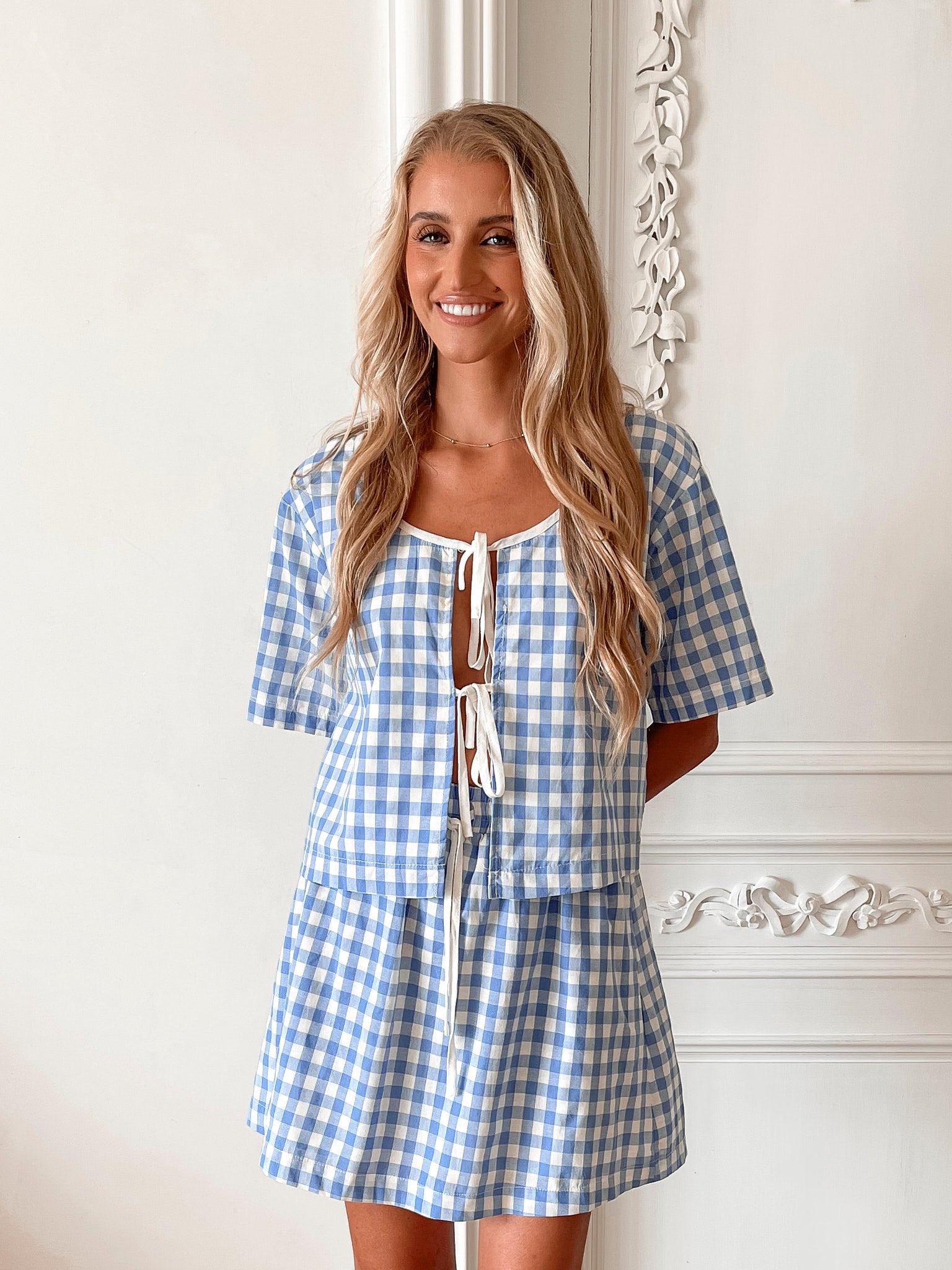 Our Revan Skirt comes in blue and white tones. Give your wardrobe a fun yet polished update with this number that is high waisted and features an a-line silhouette and mini length hem. Complete your look with the Revan Top!